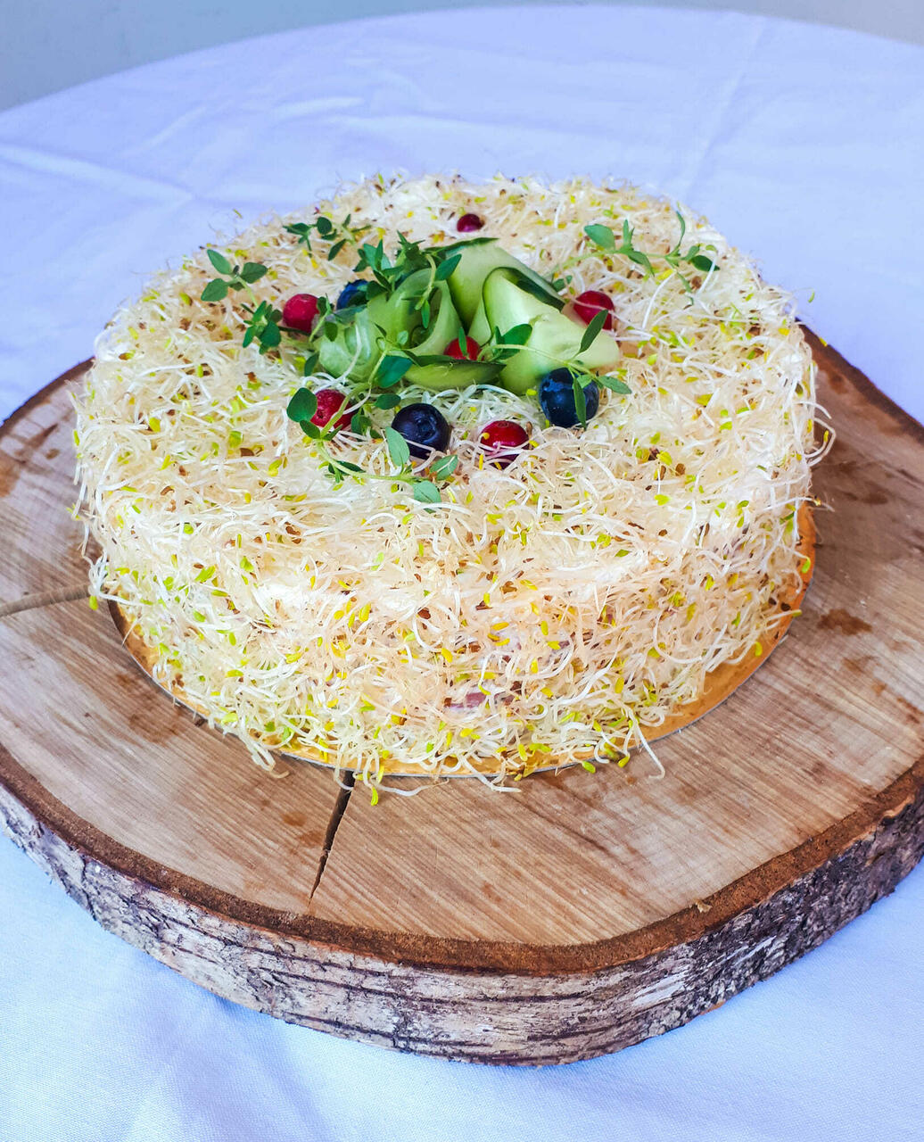 Koostisosad: nisujahu, sool, pärm, sink, hapukurk, hapukoor, majonees, toorjuust, idu, kurk, mustikas, jõhvikas.